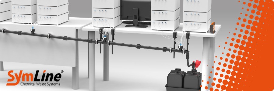 No obstruction due to containers standing in the working area. Liquids are safely collected, at one central point.