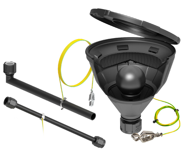 Special care is required when collecting flammable liquids. Static charging may occur during drainage which is the cause of static sparking and increased fire risk. SymLine built-in solutions made of electrostatic conductive plastics prevent static charging and can be secured by means of additional grounding connections.