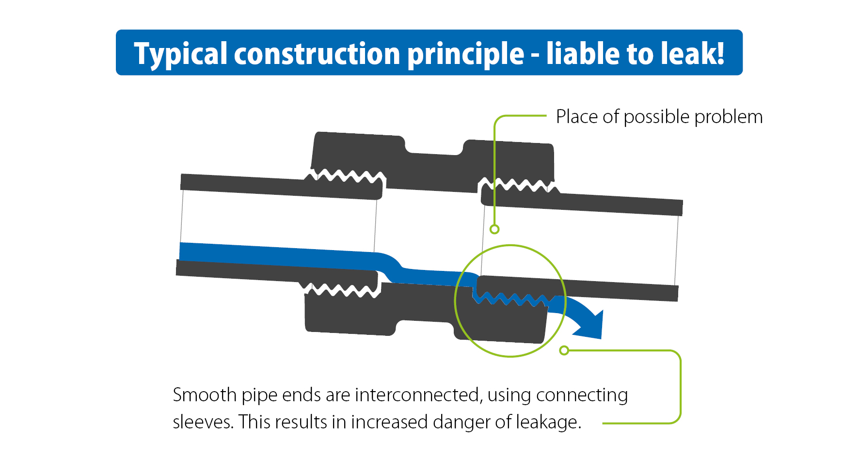 The principle "smooth tube end runs in funnel-shaped threaded socket" optimally leads waste liquids and prevents leaks. This SymLine design is the global standard for all types of waste disposal cycles and their installations. Trust SymLine - the market leader - for safe disposal.