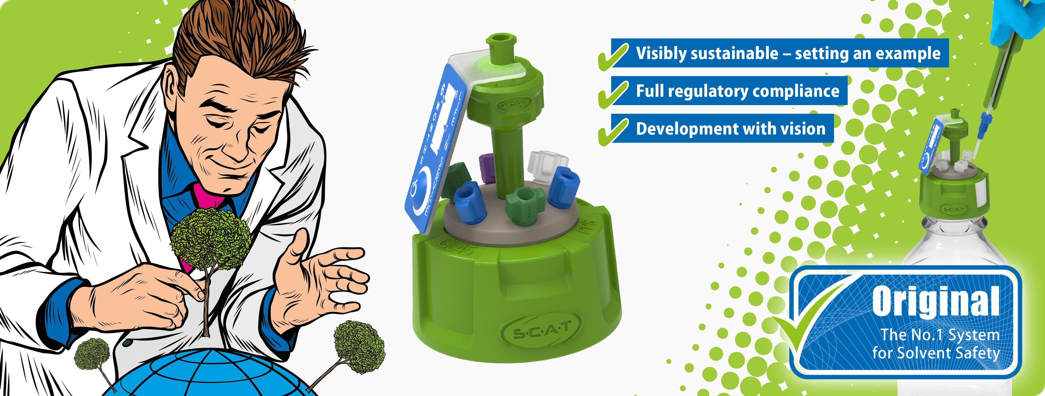 With their green color, Green Line Safety Caps are immediately recognizable – not just as a new product, but as a statement. They show that this laboratory takes responsibility, thinks ahead, and actively shapes a PFAS-free future.