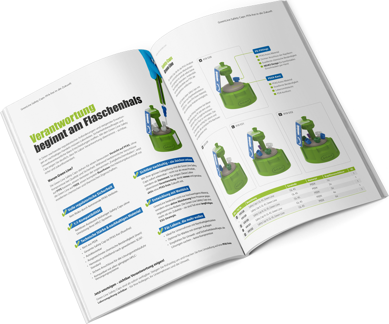 GreenLine Safety Caps are now available. Switch early and make your transition to a PFAS-free laboratory environment visible – for your colleagues, your company, and the environment.